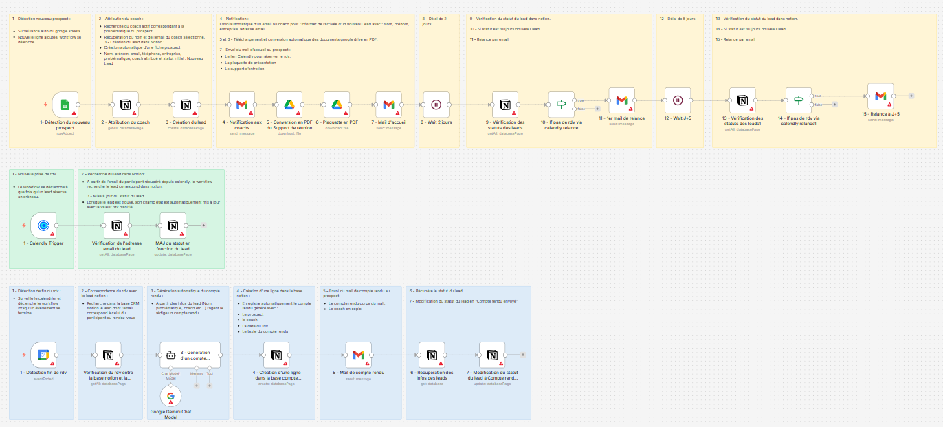 Vous trouverez plusieurs de mes workflows n8n, présentant différentes automatisations que j’ai développées pour répondre à des besoins concrets.